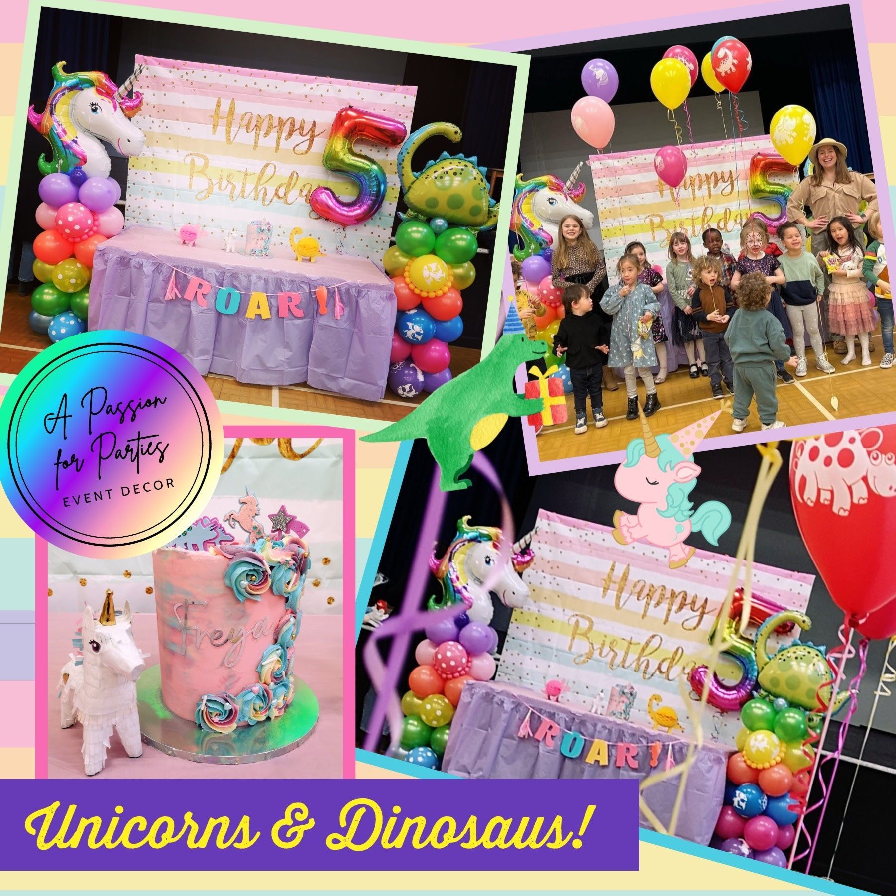 For kids' celebrations, I can deliver themed balloons to your home in Cobham and locally or set up displays at venues. For children's parties, a coordinated cake table and kids table is a good and practical combination to theme a space. Some clients like to add a themed balloon ring, balloon columns, helium bunches or a backdrop. I have contacts in the industry and can also source entertainers and cakes if you need. If you need going home gifts, I can provide themed sweetie cone bags, personalised bags or single balloons attached to a single weight sweetie box. These are popular as they can double up as party decor if they are attached to each child's chair at the kids' food table. I can work to any colour scheme or theme. I also have the flexibility to combine more than one theme if your child has more than one passion!