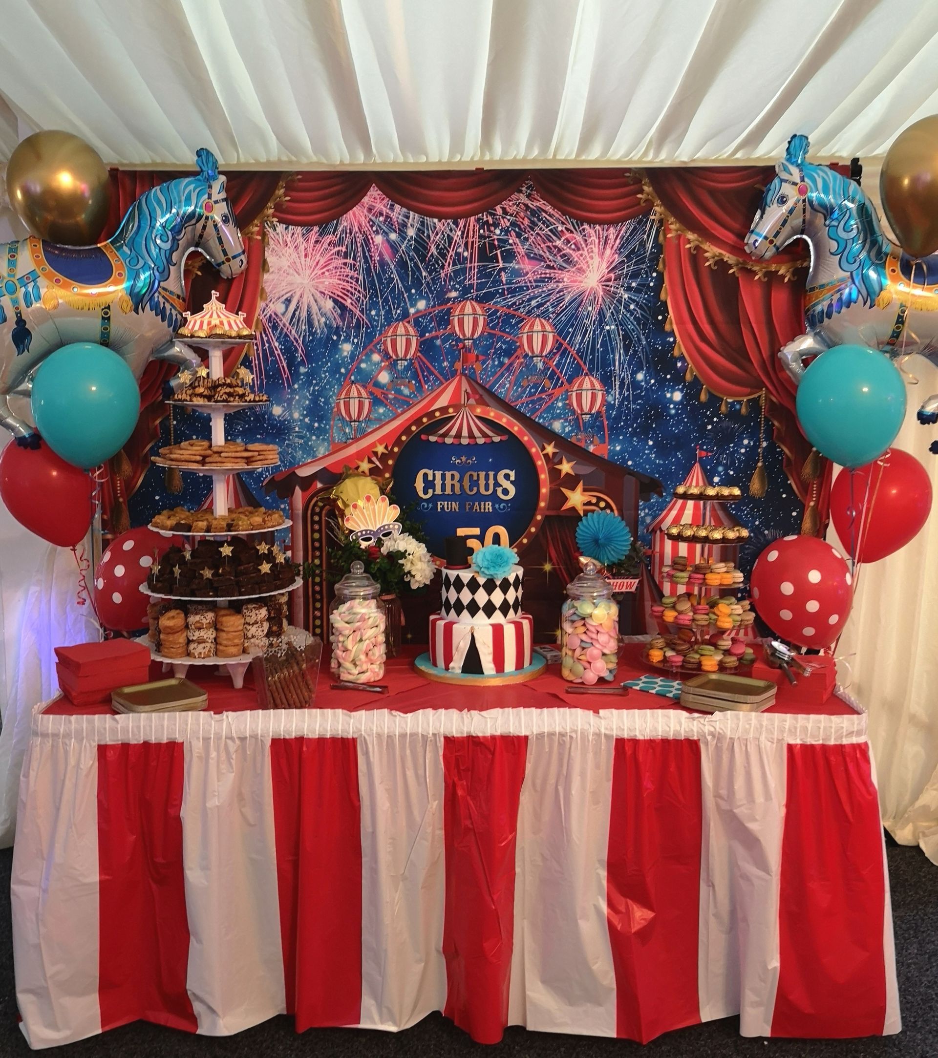 These are popular at children's events, including christenings. They provide a themed focal point in the blank room, a backdrop for photos and somewhere to showcase the obligatory cake. For adult events, they can be set up as a decorative dessert table or backrop for a grazing table. They can be easily coordinated with simple decor on other tables to add colour to a room. They are also suitable for charity events, for the set up of an eye-catching raffle table. I can set up decorated cake tables and dessert tables in Cobham and locally.