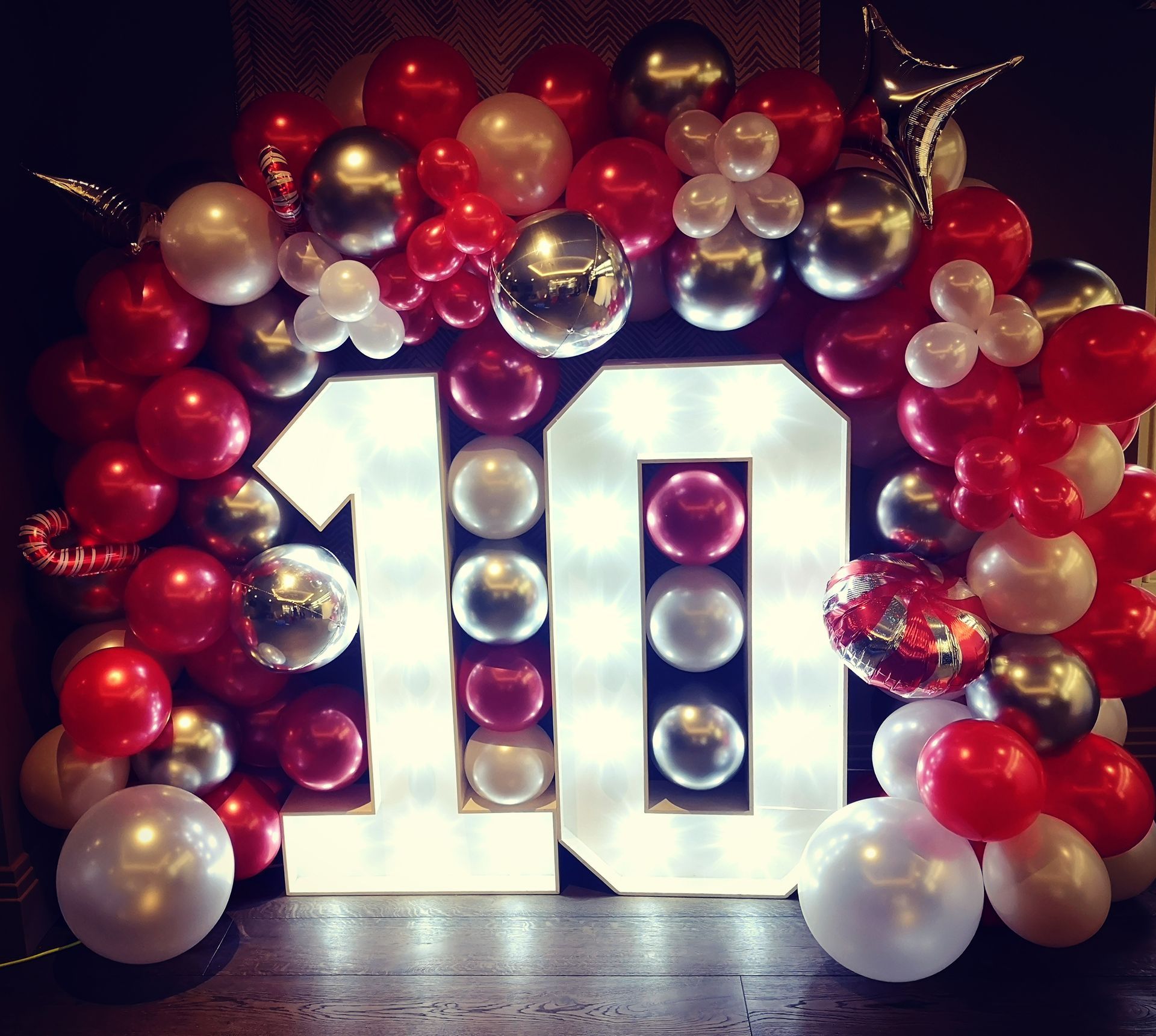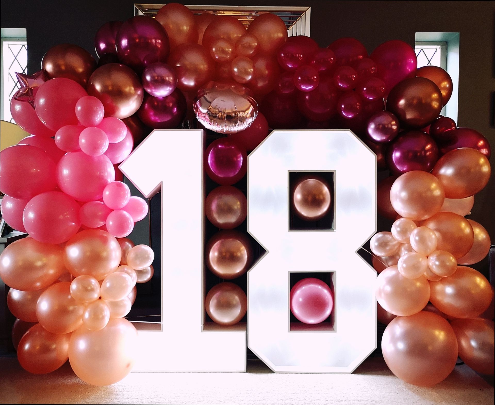 3 feet high light up numbers available to hire in white. These can be dressed up with a balloon garland along the top or indeed framing all three sides to create a large focal point in a room. They also work beautifully to enhance a backdrop. I can deliver light up numbers in Cobham and locally or they are also available for collection and return the following day as they can fit in most car boots or back seats.