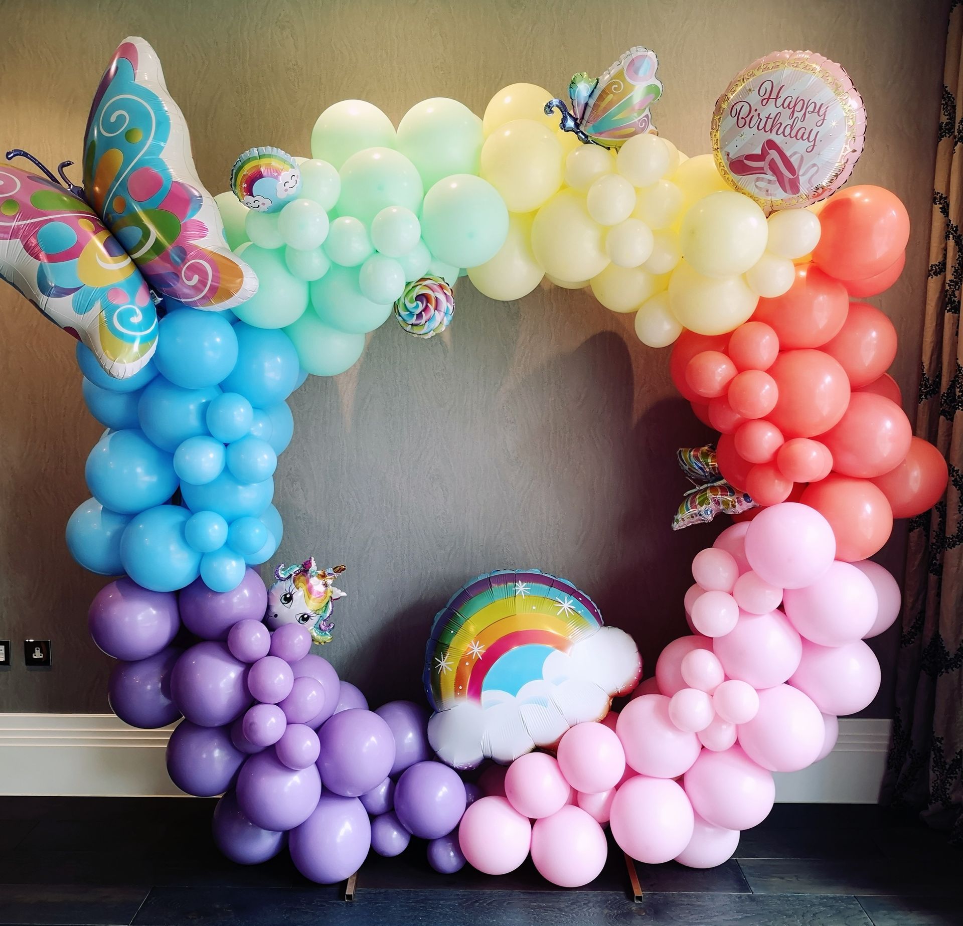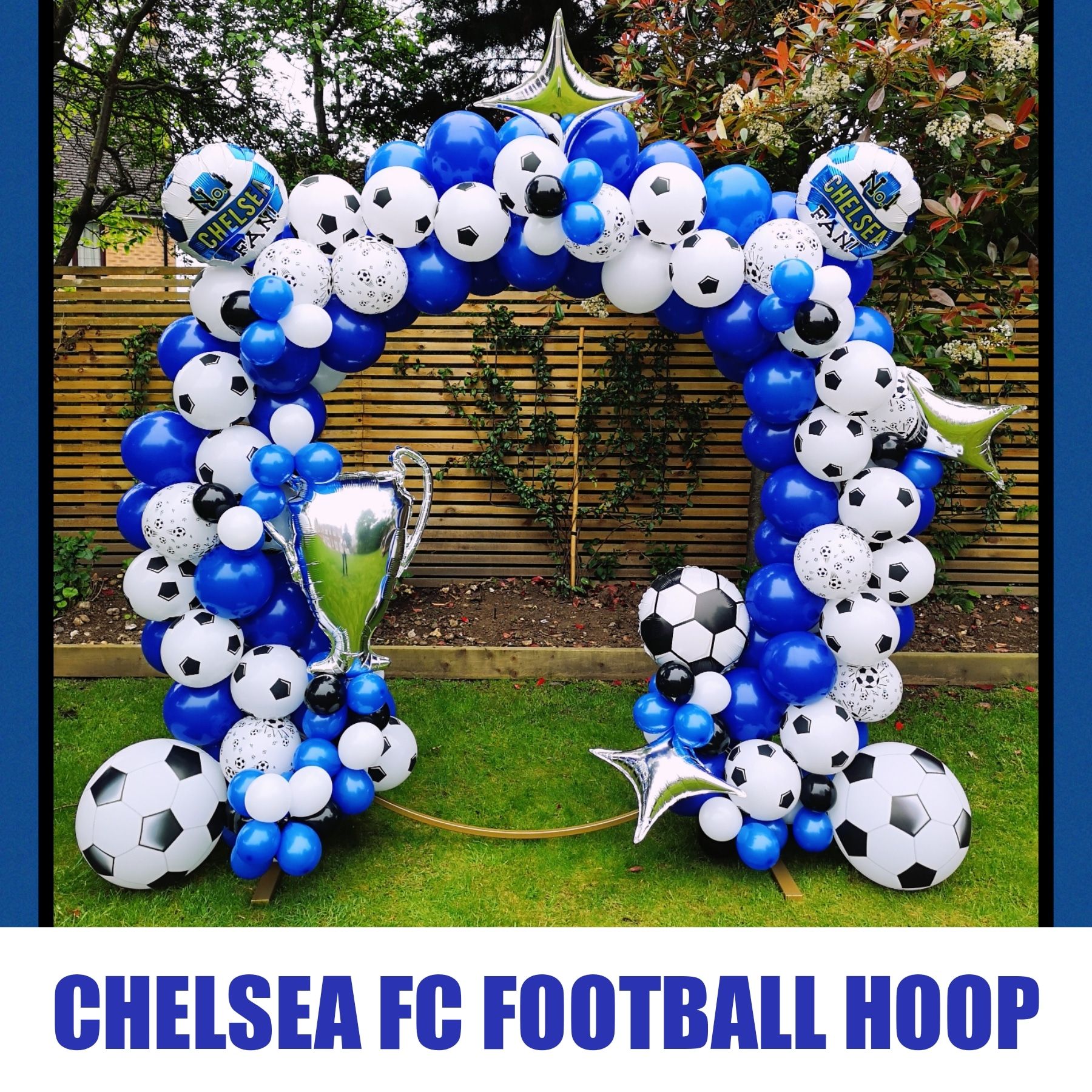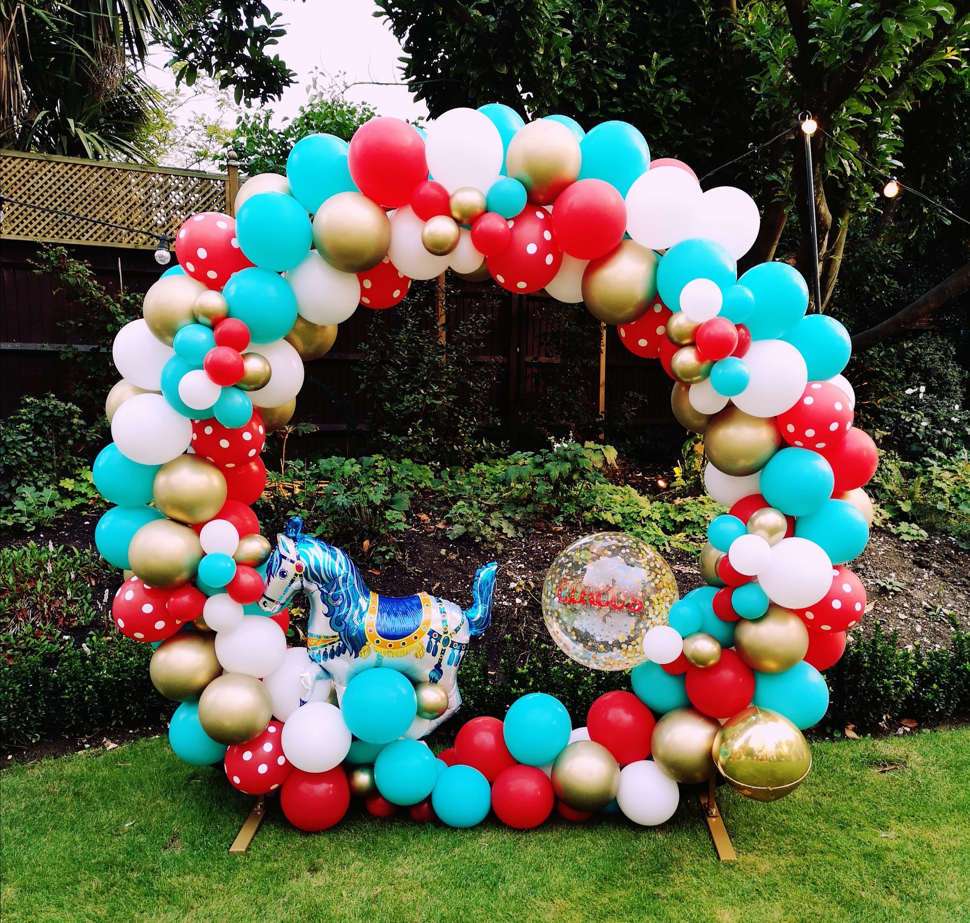 I can set up balloon rings in Cobham and locally. They provide a large scale themed focal point. They can work well outdoors as if it is breezy the air can flow through them, making them less likely to fall over. However they need a decent view behind them as this will also be in view.